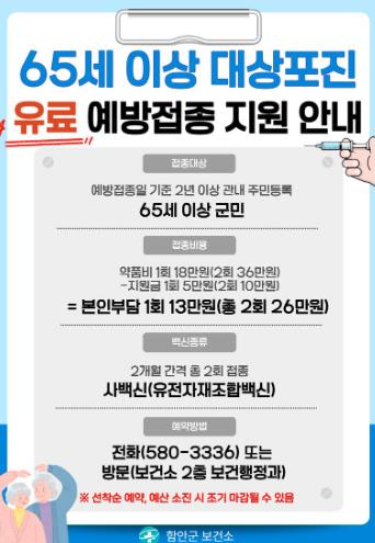 ![]() 함안군 보건소, 2026년 대상포진 유료 예방접종 안내 |