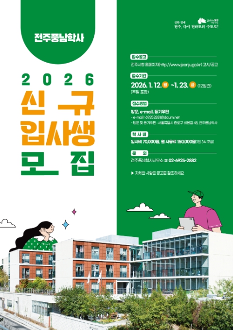 ![]() 2026년도 전주풍남학사 신규입사생 모집 포스터 |
