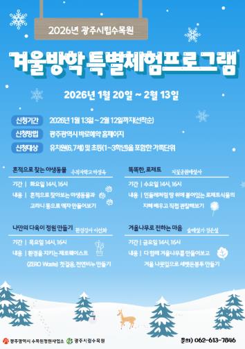 ![]() 광주광역시 시립수목원, 겨울방학 체험프로그램 운영 |