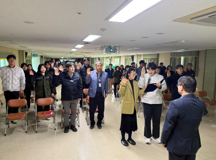 이번 서약식에서 대구교육낙동강수련원 전 직원은 안전보건수칙 준수 서약서를 함께 낭독하고, 서약서를 작성함으로 ▲작업 전 안전수칙 및 안전표지 준수 ▲안전모, 안전화 등 보호구 착용 ▲모든 장비나 작업기구 점검 후 사용 ▲작업 전 안전보건조치사항 준수 ▲안전보건교육 철저 이수 ▲정기 건강검진 의무 준수 등 안전한 근무환경 조성과 안전문화 확산을 위한 자발적 의지를 다짐했다.