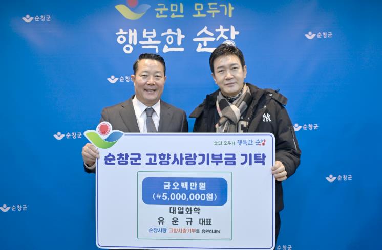 ![]() 대일화학 유운규 대표, 순창군에 고향사랑기부금 500만원 기탁 |