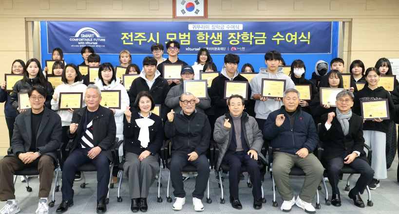 최진민 귀뚜라미그룹 회장은 “누구에게나 평등한 교육 기회를 제공하는 것이야말로 기업이 사회에 환원할 수 있는 가장 가치 있는 투자”라며 “오늘 전달된 장학금이 전주의 미래를 이끌어갈 학생들의 꿈을 이루는 마중물이 되기를 바란다”고 격려했다.