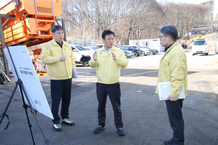 먼저 이 시장은 제설 자재 보관 창고를 찾아 염화칼슘 등 필수 자재의 비축 현황과 제설 차량 등 장비의 작동 여부를 꼼꼼히 점검했다.