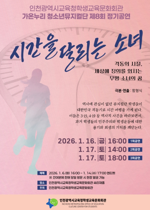 ![]() 가온누리 청소년뮤지컬단 제8회 정기공연 ‘시간을 달리는 소녀’ 개최 |
