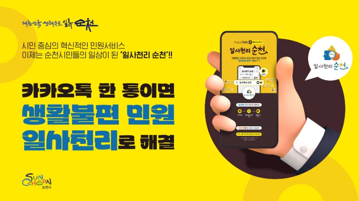 ‘일사천리 순천’은 다수의 시민들이 이용하는 카카오톡 채널을 통해 생활 속 불편 민원을 즉시 접수하고 처리 결과까지 확인할 수 있도록 구축된 스마트 민원 서비스다.